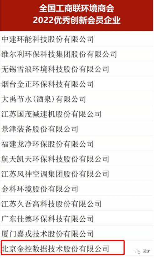 榮譽(yù)—金控?cái)?shù)據(jù)榮獲全國(guó)工商聯(lián)環(huán)境商會(huì)“2022年度優(yōu)秀企業(yè)創(chuàng)新會(huì)員企業(yè)”稱號(hào)