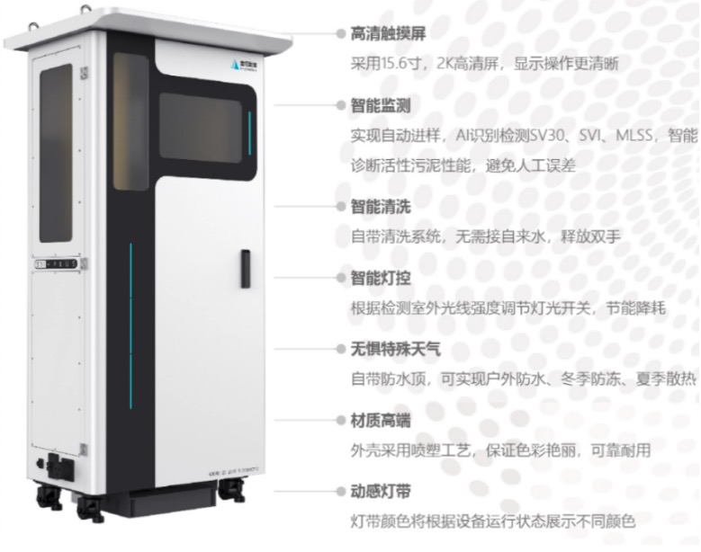 沉降性能監測儀是一款以先進的AI算法和大數據技術為核心驅動的智能設備。它,不僅能夠對污水處理過程中的活性污泥沉降性能進行全面且深入的檢測與診斷,還可用于自來水生產環節中沉淀物質的檢測,甚至能夠覆蓋其他眾多行業場景里涉及沉淀沉降的各類狀況。該設備集成了智能進樣、精準的參數檢測以及自動清洗等一系列實用功能,可實現對整個檢測過程的數據全面記錄,并通過大數據分析技術進行綜合處理與深度分析。