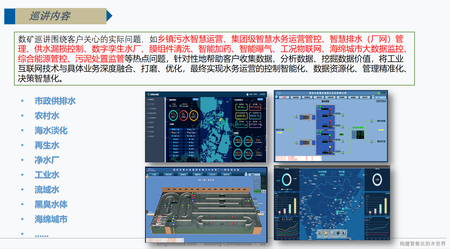 金控?cái)?shù)據(jù)專注于智慧水務(wù),提供從監(jiān)測(cè)設(shè)備到軟件的全面解決方案,以"數(shù)礦"平臺(tái)為核心,實(shí)現(xiàn)水務(wù)智能化管理和運(yùn)維服務(wù),助力水務(wù)行業(yè)數(shù)字化轉(zhuǎn)型。